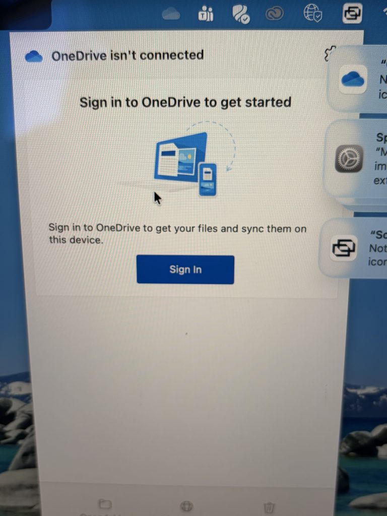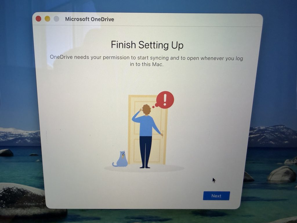 Before using your Macbook, go ahead and setup Onedrive. Onedrive is our cloud storage provider. It will back up all of your files in your Desktop, Documents, and Pictures folders. In a event where your device dies or gets lost, your files are recoverable.