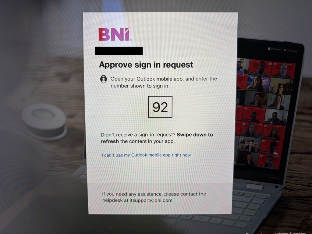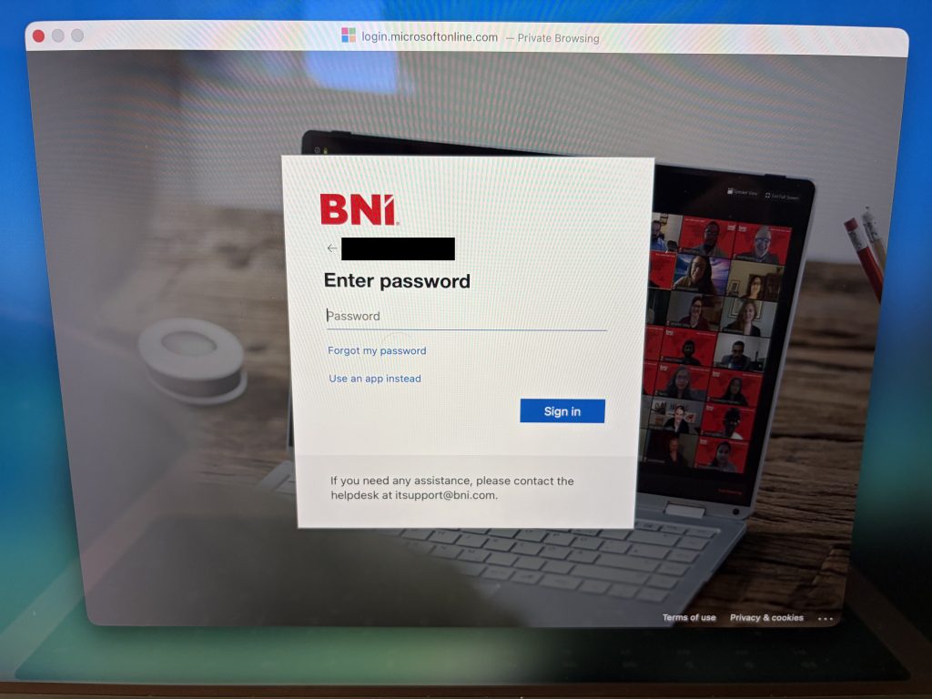 A window will pop up to enter your BNI email. If you are a new employee, you’ll receive your company email address as well as the password in the email that was sent to you from itservicedesk@bni.com. Once you entered your email, click next.