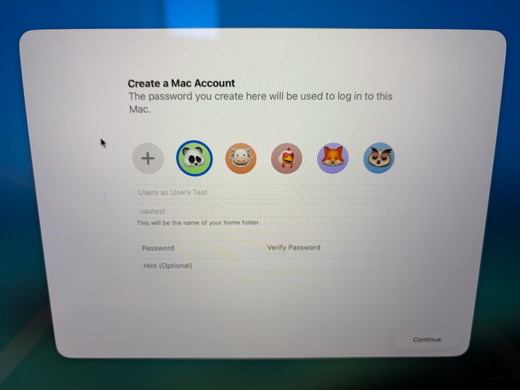 You’ll be asked to create a password for your Macbook. You are free to use the same password as your corporate email or if you would like to use a different password, that is fine as well and click on Continue.